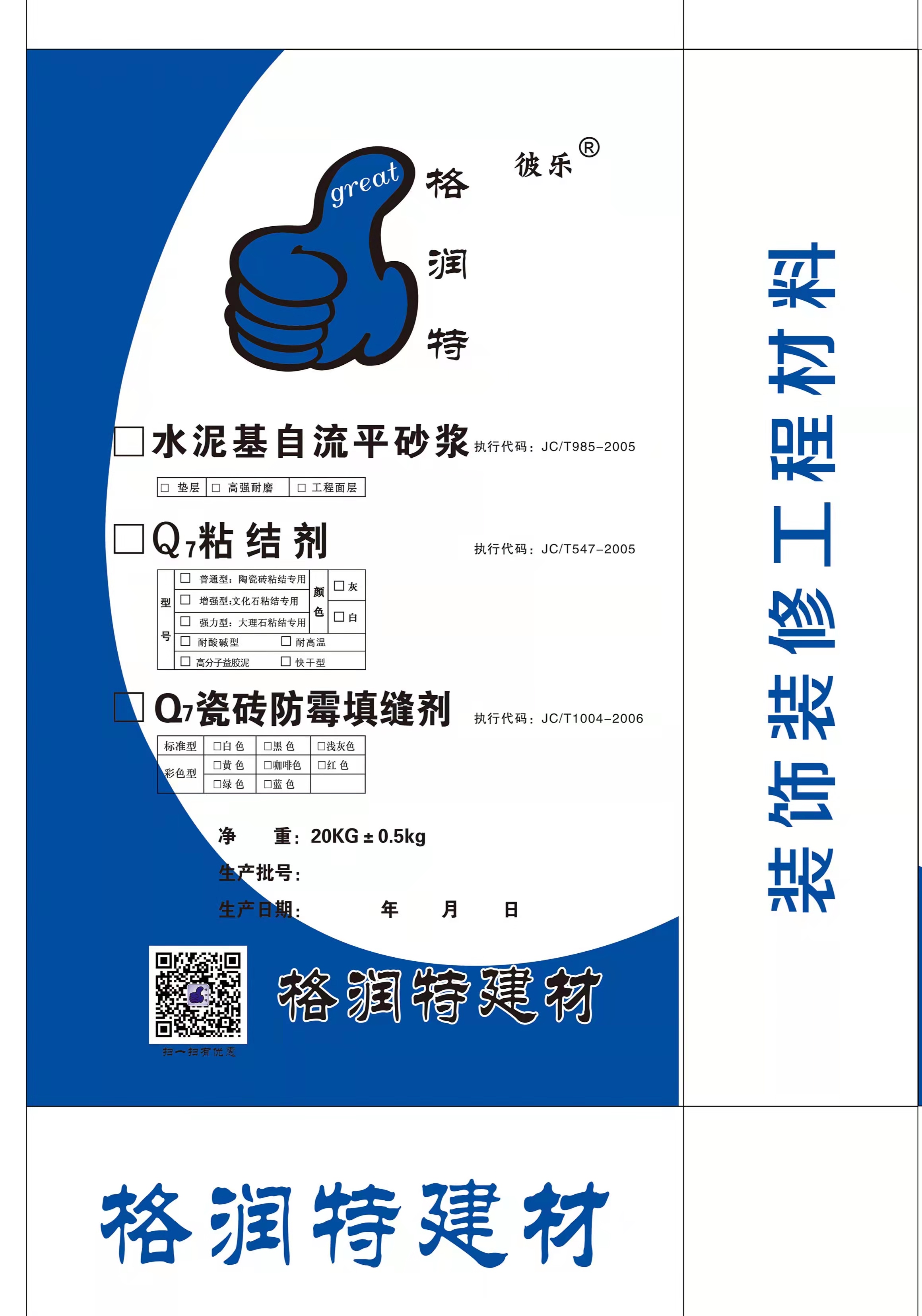 普通型: Q7型陶瓷磚粘結劑,適用于室內、外墻及地面粘貼陶瓷磚,亦可用于防水卷材抹面保護層。